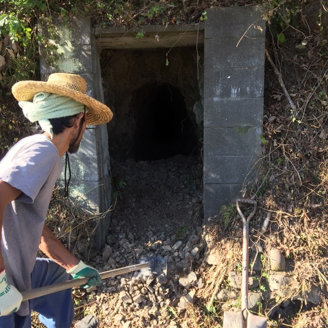 入り口がすこし風にさらされて崩れていたので、土砂をかき出しました。あとはドアをつけなければ。居心地がよくてびっくりしたけど、崩れてくることも想定して、長居は無用、ヘルメット着用で安全第一で使わせていただきます!